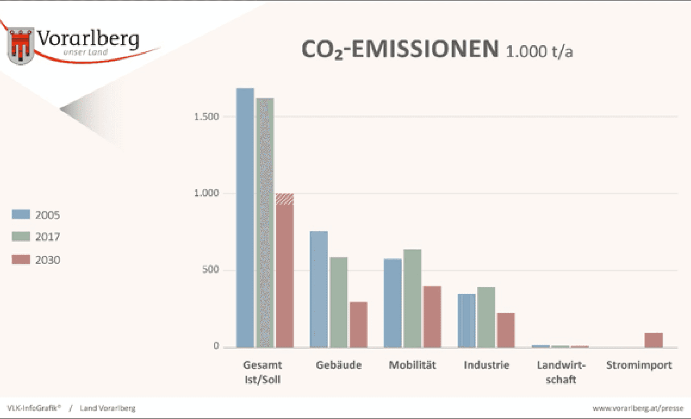 Die Fachhochschule Vorarlberg wurde gemeinsam mit dem Energieinstitut dazu beauftragt, unterschiedliche Szenarien zur Erreichung der Ziele bis 2030 aufzustellen. Die Zukunftsszenarien wurden für die vier Verbrauchssektoren „Gebäude“, „Mobilität“, „Industrie und Gewerbe“ und „Landwirtschaft“, sowie den Sektor „Energiebereitstellung“ ausgearbeitet. Unter Mitwirkung von sieben Experten aus beiden Institutionen und basierend auf umfangreichen Recherchen, sowie mehr als 20 Interviews mit Fachleuten im Land, entstand die „Szenarienbetrachtung 2030“. Projektleiter Markus Preißinger fasst die Ergebnisse so zusammen: „Vorarlberg kann die festgelegten CO2-Ziele auf EU-, Bundes- und Landesebene bis 2030 erreichen, sofern die ambitionierten Ziele in allen Sektoren – weniger Energiebedarf und mehr Erzeugung aus Erneuerbaren Energien – eingehalten werden“.