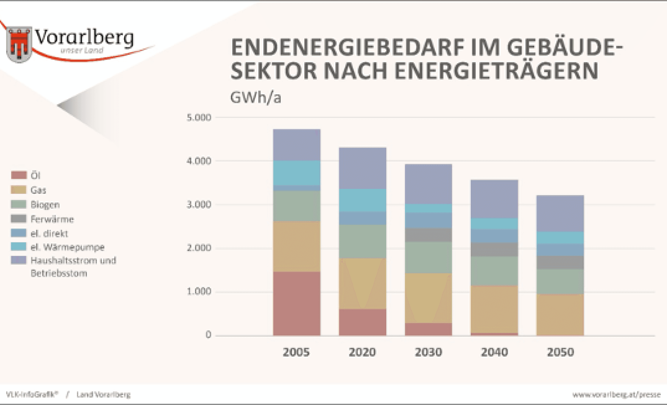 Damit Vorarlberg das angestrebte Niveau beim Energieverbrauch erreicht, sind noch große Anstrengungen erforderlich. Deshalb wurden folgende Anforderungen bei der Zielsetzung für 2030 im Climate Emergency Beschluss des Landes und im Regierungsprogramm 2024 festgehalten: Das Klima soll durch 40 Prozent weniger Treibhausgase als noch 2005 geschützt werden. Der Anteil erneuerbarer Energieträger für Strom und Wärme ist auszubauen. Konkret sollen erneuerbare Energien bis 2030 mindestens 50 Prozent des Gesamtendenergiebedarfs decken. Und: Der Beitrag der Mobilität von -36 Prozent CO2-Reduktion ist sicherzustellen.