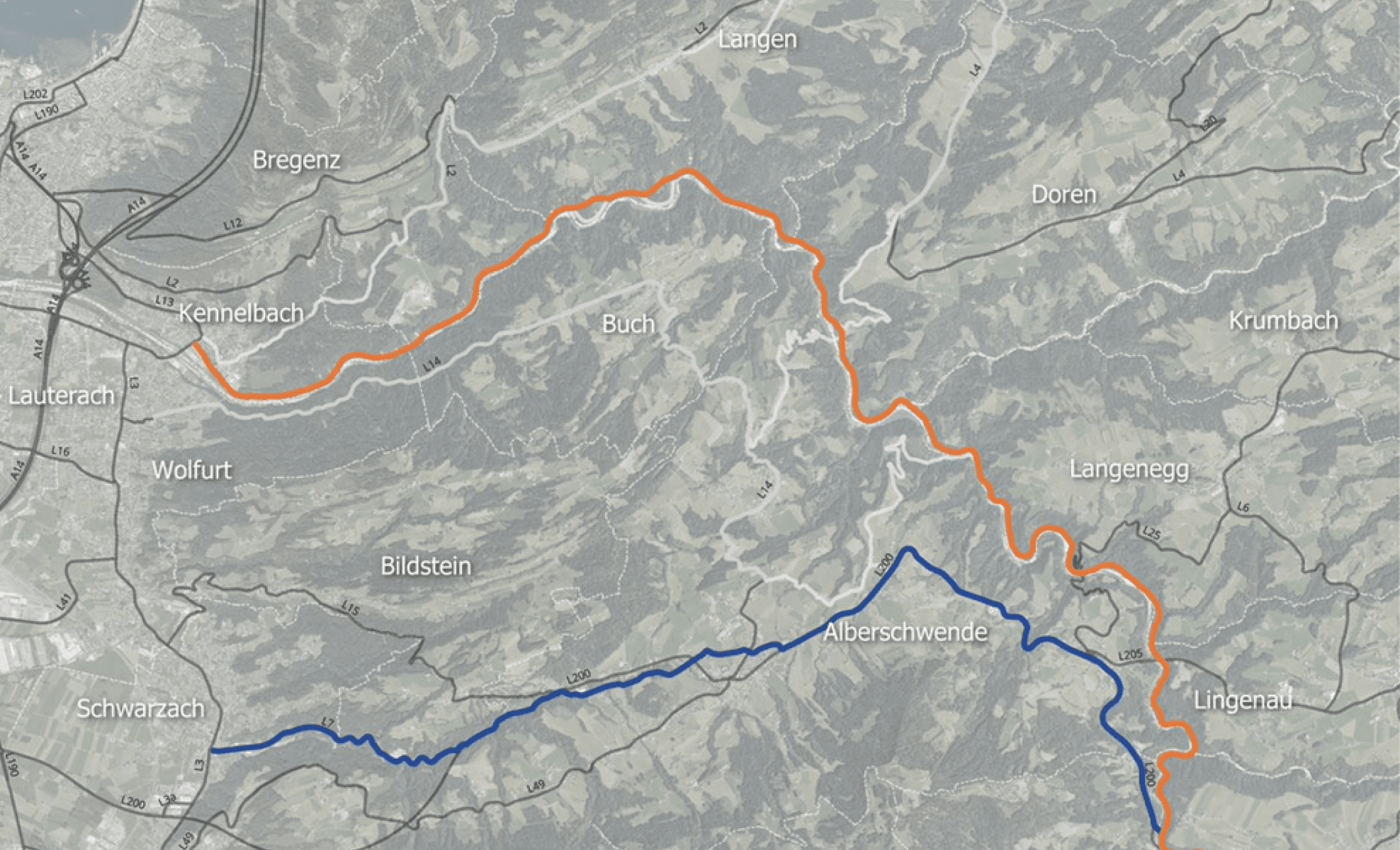 Übrig bleiben zwei mögliche Radrouten, die nun einer klaren Entscheidungsfindung zugeführt werden, da beide Routen unterschiedliche Herausforderungen und Vor- wie Nachteile mit sich bringen. „Zum einen sehen wir uns eine modifizierte Radwegelösung von Egg nach Kennelbach durch das Achtal genauer an, die unter anderem zwei jeweils rund 500 Meter lange Tunnel beinhalten würde“, erläuterten Zadra und Flatz. „Zum anderen prüfen wir die Errichtung eines Radweges von Egg bis Alberschwende entlang der L200 und eine Weiterführung durch das Schwarzachtobel nach Schwarzach.“