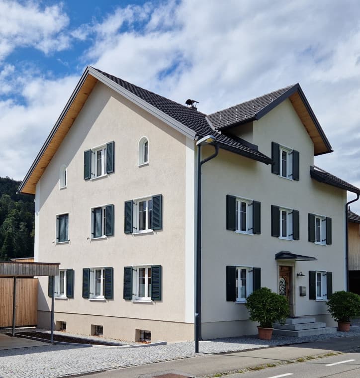 - Fassade: Original erhalten, mit 20 cm Holzfaserdämmung thermisch saniert