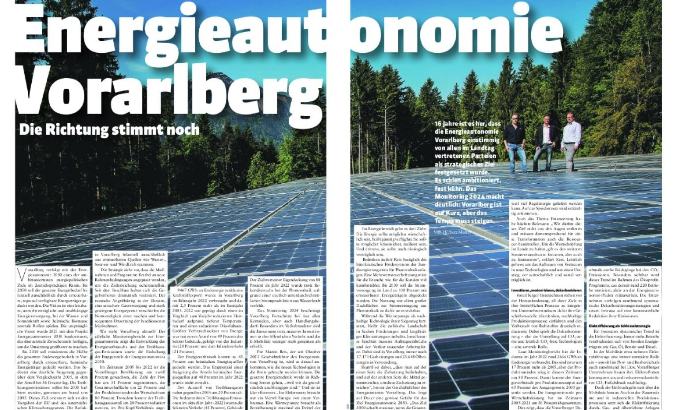 Die Energieautonomie war Schwerpunkt im Thema Vorarlberg. Der Beitrag „Energieautonomie Vorarlberg – die Richtung stimmt noch“ von Herbert Motter findet sich in der Ausgabe vom 8. Mai 2025.
