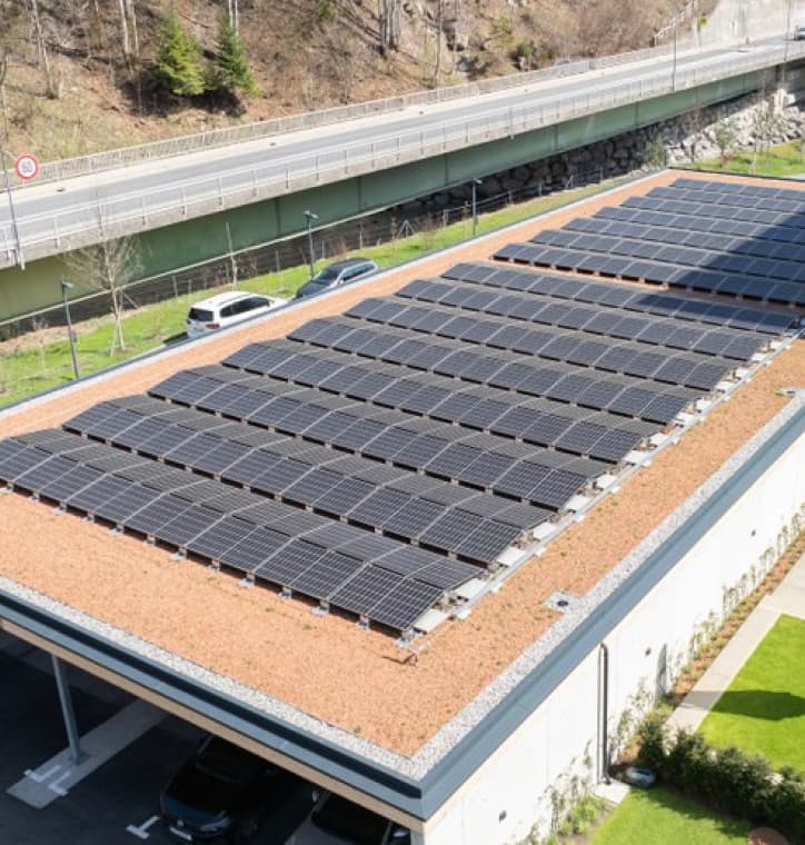 Die Photovoltaikanlage produziert nun umweltfreundlichen Strom, während das Gründach für angenehmen Hitzeschutz sorgt, Wasser zurückhält und ein Stück Natur zurück auf das Gelände bringt. Ein weiterer Pluspunkt: die Schneeräumung rund um die Parkplätze entfällt.