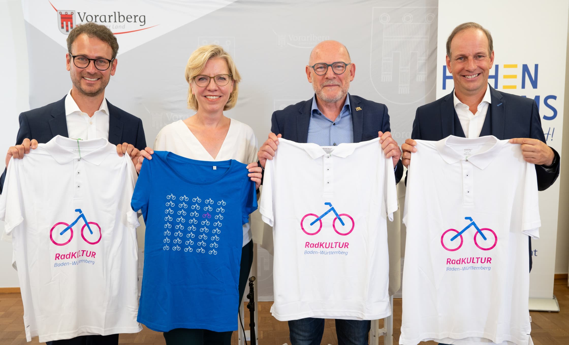 Anlässlich des 14. Österreichischen Radgipfels in Hohenems vollzogen Bund, Länder und Gemeinden im September 2023 einen wichtigen Schulterschluss für die Stärkung des Radverkehrs in Österreich und im grenzüberschreitenden Raum. Klimaschutzministerin Leonore Gewessler präsentierte gemeinsam mit Vorarlbergs Mobilitätslandesrat Daniel Zadra, dem Verkehrsminister von Baden-Württemberg Winfried Hermann sowie dem Hohenemser Bürgermeister Dieter Egger das umfangreiche Förderpaket für mehr Radverkehr.
