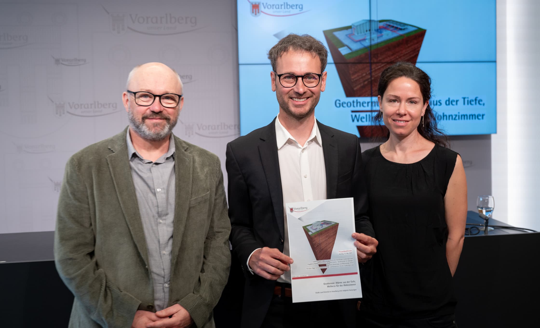 Abhängig von den geologischen Verhältnissen schlummern in mehreren Kilometern Tiefe heiße Quellen, die für eine CO₂-freie Wärmeversorgung genutzt werden können – viele denken dabei an Thermalbäder. „Über Fernwärmesysteme lässt sich diese Energie aus der Erdkruste auch zum Heizen von Gebäuden einsetzen“, informierte Landesrat Daniel Zadra im heutigen (Montag) Pressegespräch im Landhaus. Eine nun vorliegende Studie zeigt, dass es in Vorarlberg zwei Zonen gibt, die für eine wirtschaftliche Erschließung geeignet wären: Den Norden des Rheintals und den Raum Feldkirch.