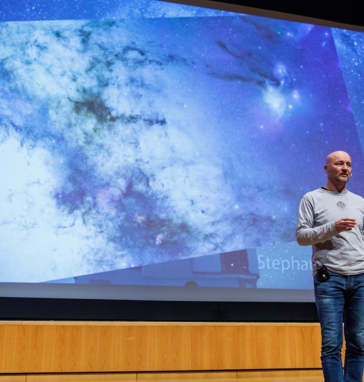 Der öffentliche Abendvortrag von Dietmar Hager mit dem Titel „Von nachtgrauen Katzen und einem leuchtenden Sternenzelt“ entführte die interessierten Anwesenden auf unterhaltsame Weise in die Welt der Astronomie und erläuterte die Effekte von zu viel künstlichen Lichtquellen auf unsere eigene Wahrnehmung der Welt.