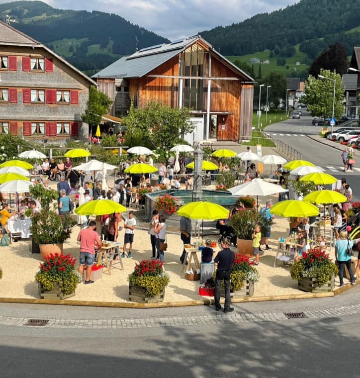 Der Pop.up.Dorfplatz in Hittisau ist ein inspirierendes Beispiel dafür, wie durch gemeinsames Engagement, kreative Ideen und mit geringen finanziellen Mitteln vorübergehend ein lebendiger Raum der Begegnung geschaffen werden kann – für alle.