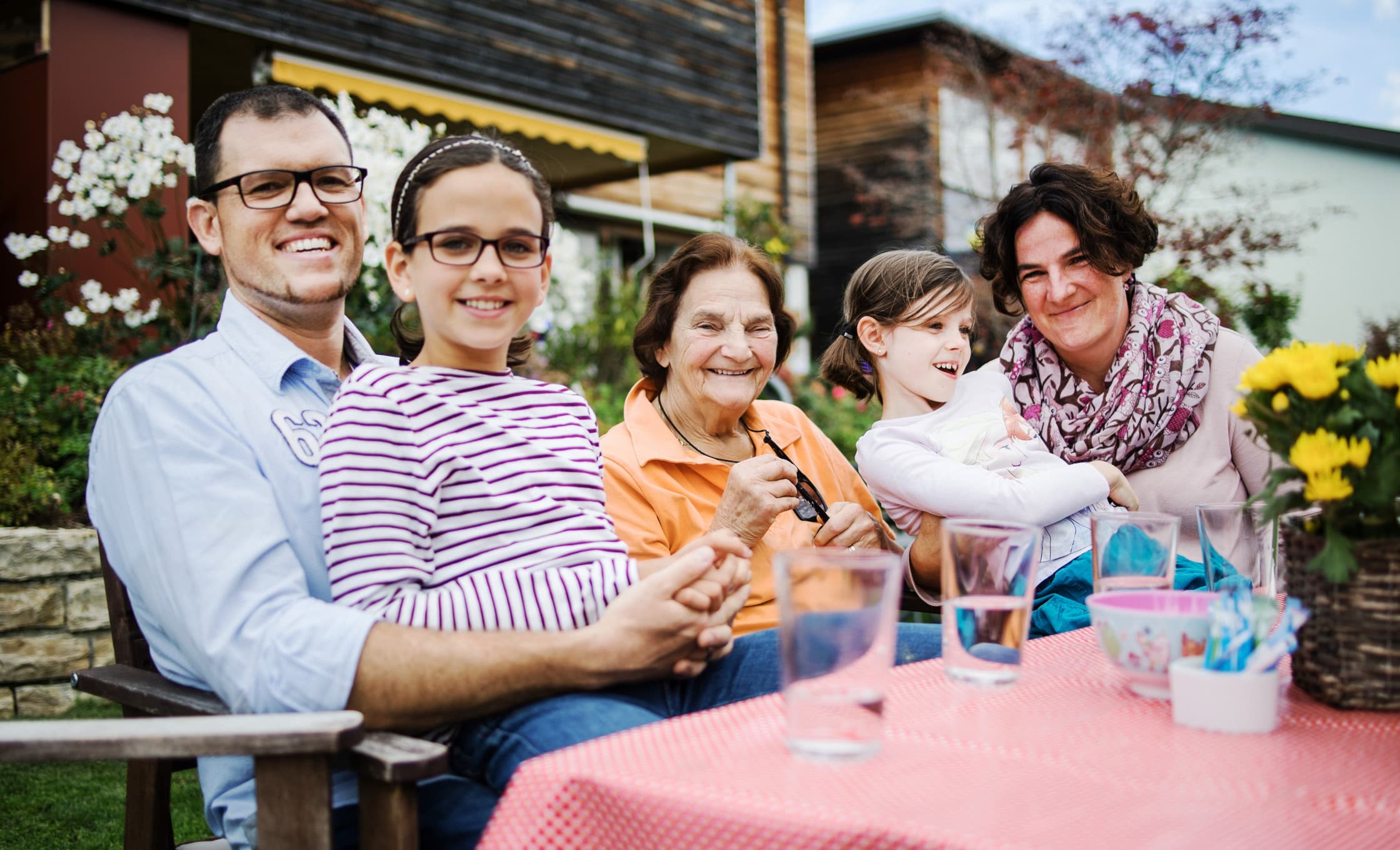 Wir sitzen im Garten und trinken Kaffee, während die Kinder Anna (9) und Ida (6) über die Wiese jagen. Oma Marlies (80) genießt sichtlich entspannt Sonne und Trubel.