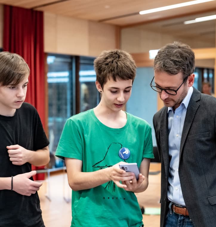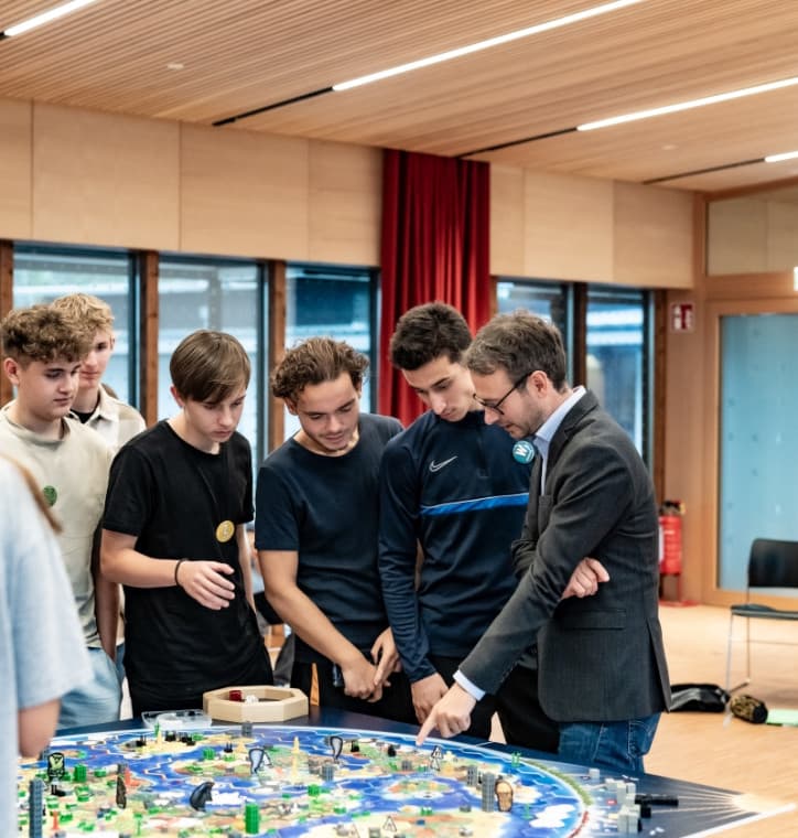 Drei Tage lang schlüpften 32 Schüler:innen in St. Arbogast in die Rolle von Entscheidungsträger:innen aus Wirtschaft, Politik und Zivilgesellschaft. Mithilfe eines „App-Brett-Planspiels“ konnten die Teilnehmenden sowohl die Komplexität als auch die gegenseitigen Abhängigkeiten der Klimakrise begreifen. Ihre Erkenntnisse, Sorgen und Ideen teilten die Jugendlichen mit Energie- und Klimaschutzlandesrat Zadra.