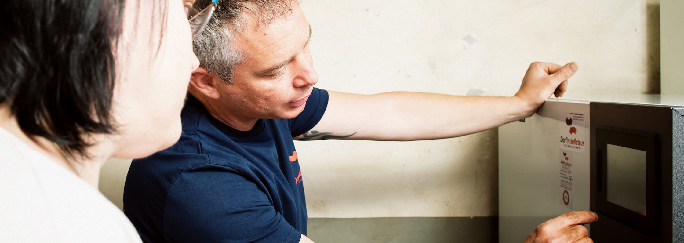 Da die ausgebildete Hotelfachfrau mit einer lautstarken Pelletsheizung im beruflichen Zusammenhang negative Erfahrungen gemacht hatte, liebäugelte sie zunächst mit einer Kombination von Pellets- und Solarheizung. „Hier hat uns der Fachmann von der Dorfinstallateur*in umfassend und offen beraten. Er konnte mir die Bedenken nehmen, denn er meinte, wenn eine Pelletsheizung laut wäre, läge dies an den falschen Einstellungen. Er hat uns außerdem mit einer einfachen Frage, Was braucht ihr mehr? Strom oder Warmwasser?´ auf die Kombination von Pelletsheizung mit einer Photovoltaik-Anlage gebracht.“