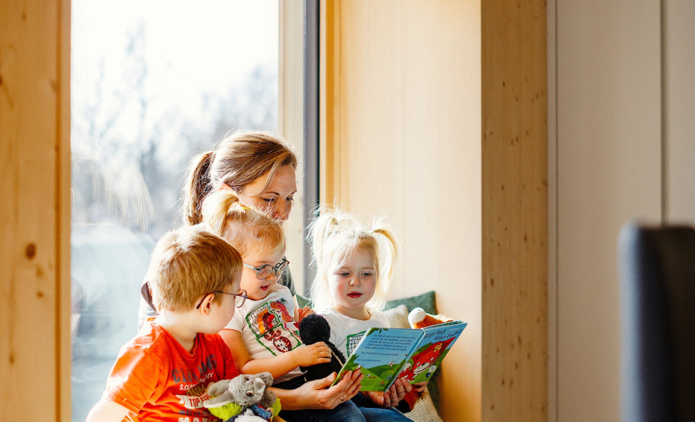 Das 2-Familienhaus von Beate und Paul sowie Tochter Aurelia mit Christian und ihren drei Kindern ist wunderbar verwinkelt und ineinander verbunden, verzichtet dennoch nicht auf individuellen Wohnraum und Privatsphäre. Mittlerweile beherbergt es die 4. Generation.