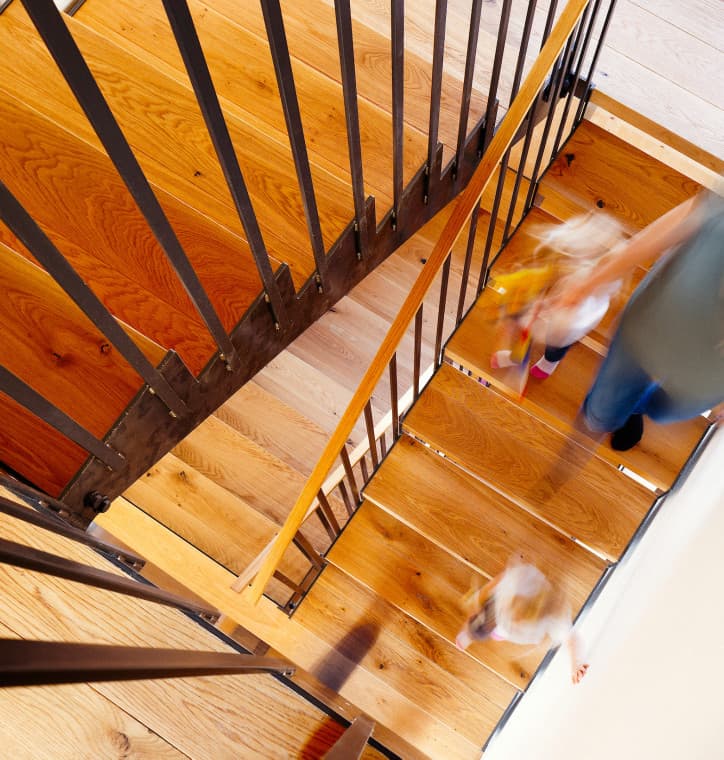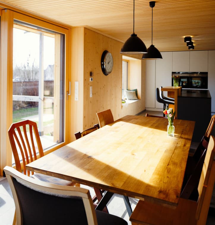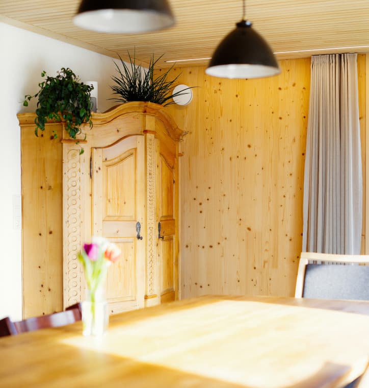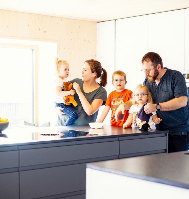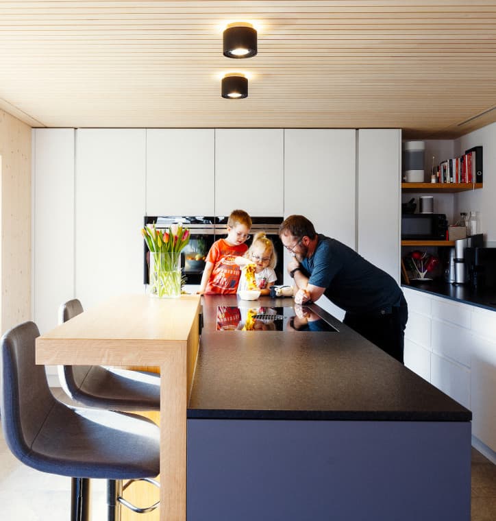Vom Elektrischen, über alle Wandaufbauarbeiten, bis hin zu Abbrucharbeiten, Verputzen oder dem Einbau der kontrollierten Be- und Entlüftung hat die Familie sehr vieles in Eigenregie gestemmt. Und sogar bei der Fassade und der Decke mitgeholfen. Wo irgendwie möglich, haben alle mitgearbeitet – für den mittlerweile pensionierten Paul etwa bedeutete das immerhin beachtliche 1 ½ Jahre Vollzeitjob am Bau.